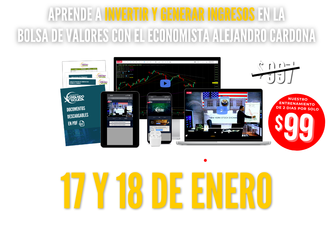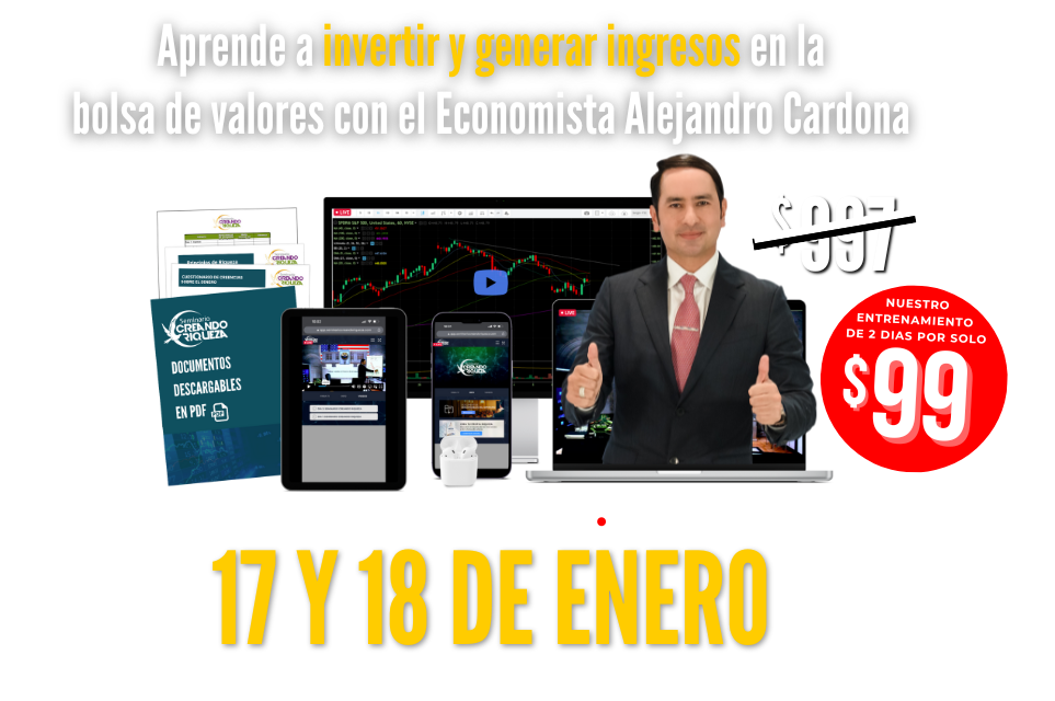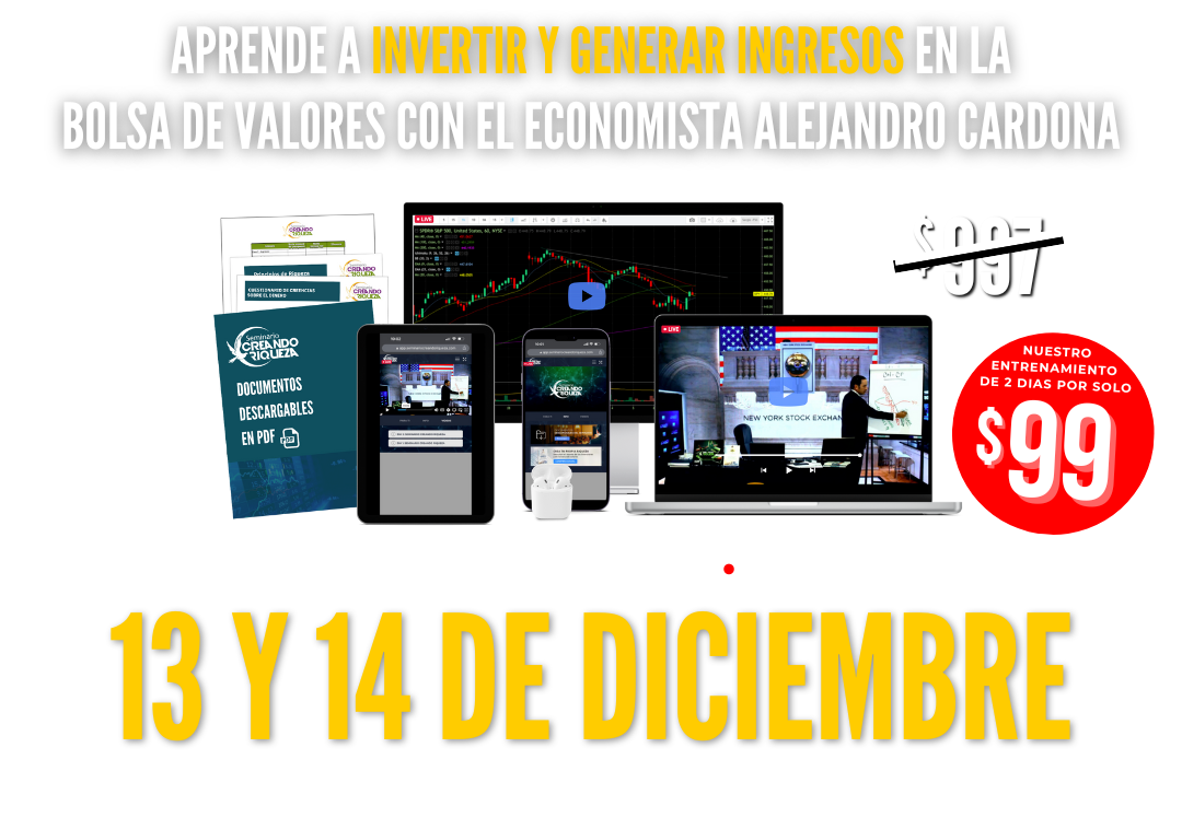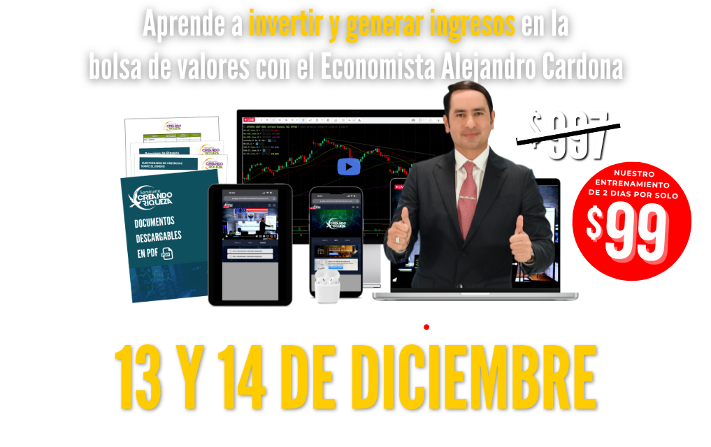 El Seminario Creando Riqueza es una experiencia educativa diseñada para transformar tu enfoque hacia las inversiones en la bolsa de valores. Durante el seminario, que se lleva a cabo a lo largo de dos días, aprenderás sobre una variedad de temas importantes relacionados con las inversiones. Estos incluyen cómo seleccionar acciones lucrativas, entender los momentos precisos para comprar y vender, así como desentrañar los secretos de los ETFs más rentables y las estrategias de inversión más efectivas. Si estás interesado en expandir tus conocimientos y habilidades en inversiones, te animo a inscribirte y aprovechar esta oportunidad única.