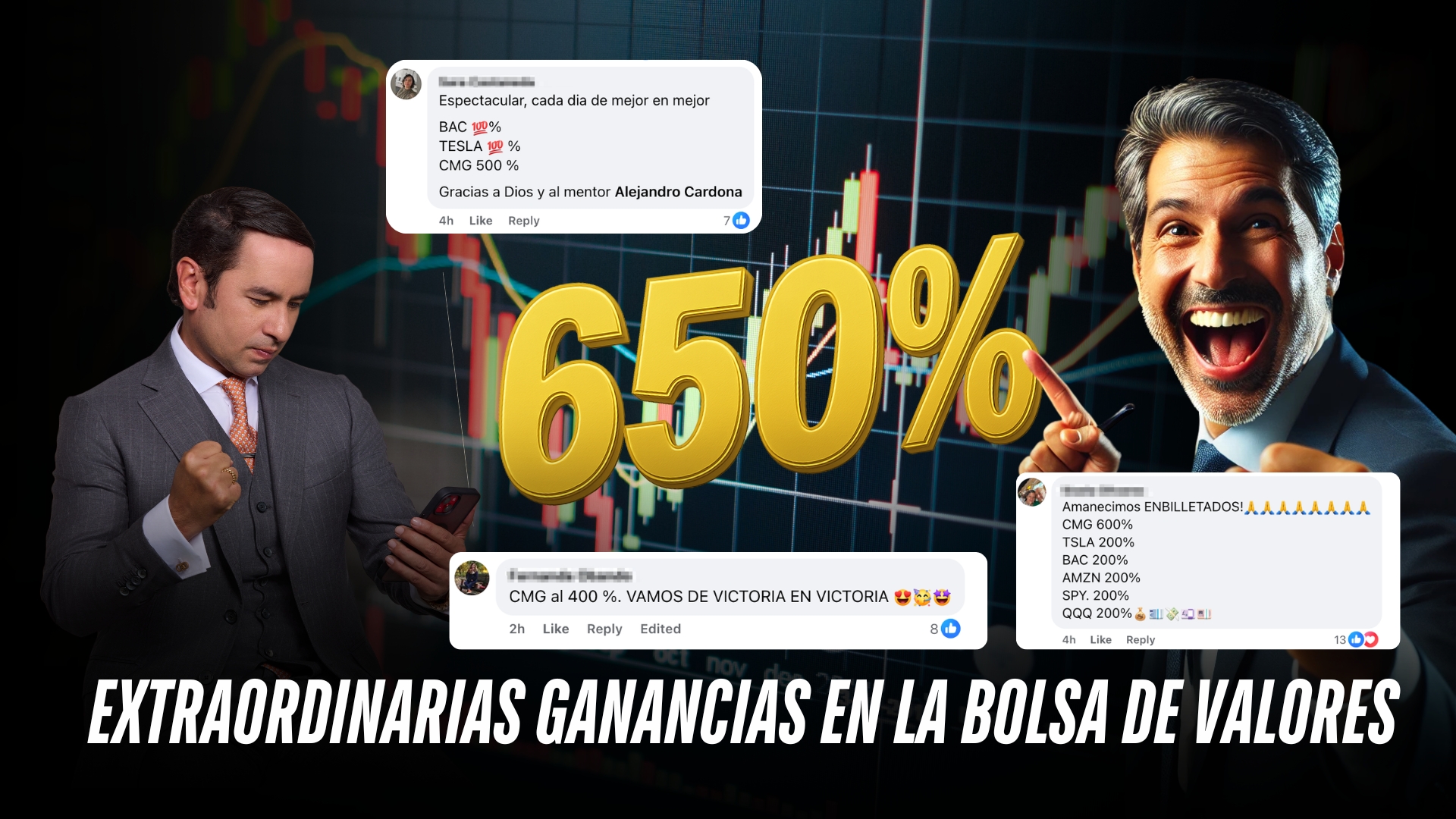 Ayer hice una inversión de $1.250 entre AMZN, APPL y SPY obteniendo hoy una ganancia de $7.432. Quiero agradecerle por todo lo que nos enseña en sus seminarios porque si no fuese por todo el conocimiento que usted le brinda a la comunidad latina, nunca llegaríamos a lograr nuestros objetivos.