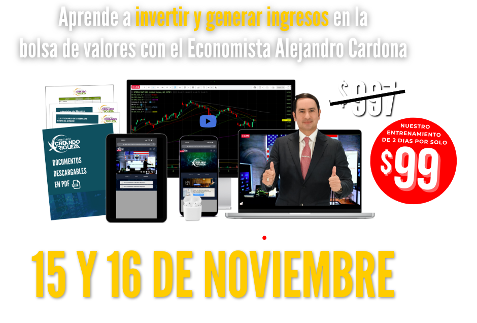 El Seminario Creando Riqueza es una experiencia educativa diseñada para transformar tu enfoque hacia las inversiones en la bolsa de valores. Durante el seminario, que se lleva a cabo a lo largo de dos días, aprenderás sobre una variedad de temas importantes relacionados con las inversiones. Estos incluyen cómo seleccionar acciones lucrativas, entender los momentos precisos para comprar y vender, así como desentrañar los secretos de los ETFs más rentables y las estrategias de inversión más efectivas. Si estás interesado en expandir tus conocimientos y habilidades en inversiones, te animo a inscribirte y aprovechar esta oportunidad única.